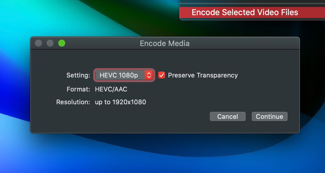 But unfortunately ffmpeg can't convert webm into HEVC with alpha, the only way as of now is via MacOS context menu's option.